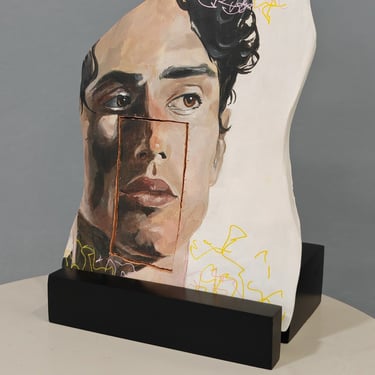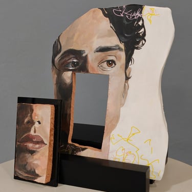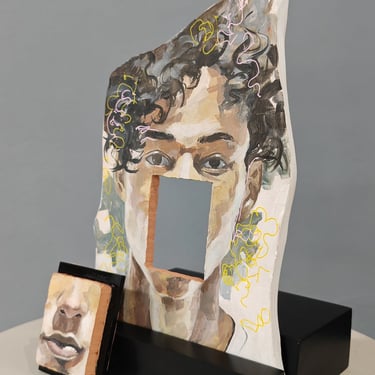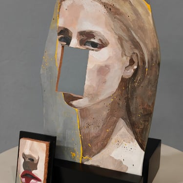 Each piece is handcrafted in painted clay, representing faces—some of well-known figures, others anonymous—that evoke a range of emotions and meanings. These portraits are transformed into rings, earrings, and other accessories that blur the lines between art and function.
