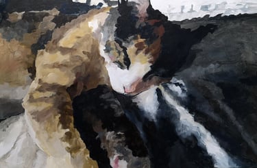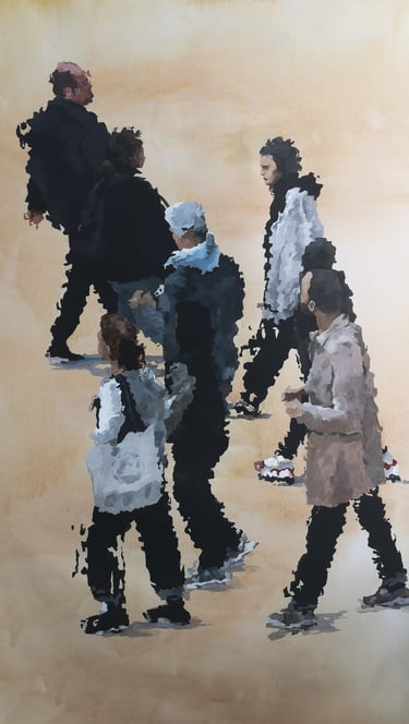 From a psychological perspective, disconnection is not presented as an escape, but as an adaptive response to sensory saturation. The body withdraws, the gaze fades, and a tension arises between presence and absence. Through the use of the body as language, the works represent states of emotional distancing, encapsulated in a visual atmosphere of isolation, containment, and stillness.