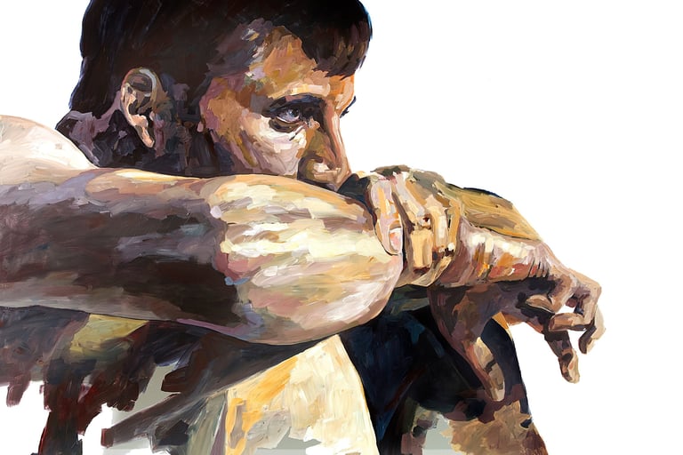In my work, this exploration materializes in the Ser Humano series, where corporality and nonverbal physical language are the central axis. Through bodily expression, I investigate how we transmit emotions, intentions, and tensions—both individually and collectively. To achieve this, I use expanded painting and experiment with materials such as wood and metal, transcending the limits of the canvas to create a deeper dialogue with space and the viewer.